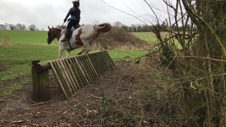 We arrive in Lisa & Katie style, chilled and taking it all in our stride as are our steeds. Pay for the course, have a little chat with a couple that have just returned from their ride having had a great time. On we get and off we go... venturing up a chalk track and meeting our first line of jumps.....